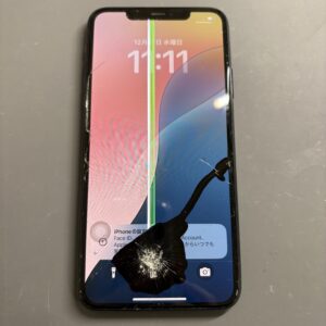 福井市からご来店いただいたお客様、「画面を割ってしまい、線と黒いシミのようなものができてしまった。操作もできない」とご相談いただきました。